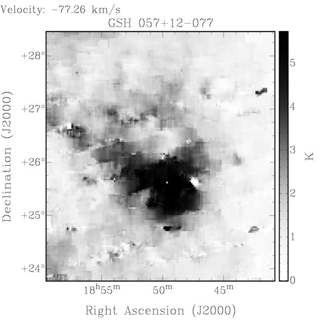 Not clear if shell is associated with local or Galactic gas. Kinematic distances could well be inaccurate.