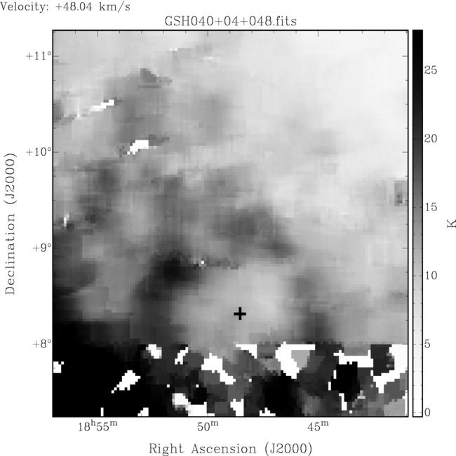 Shell clearly associated with Galactic gas, so kinematic distances relatively reliable.