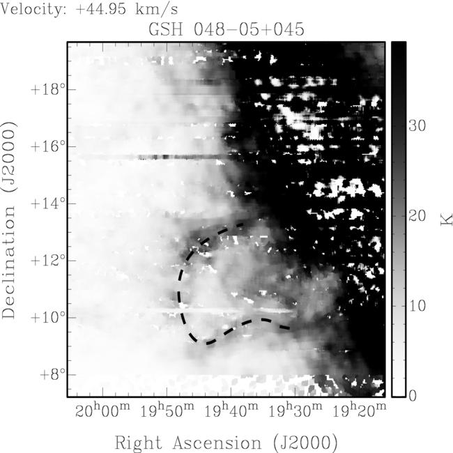 Greater distance more likely based on Galactic spiral structure in direction of shell