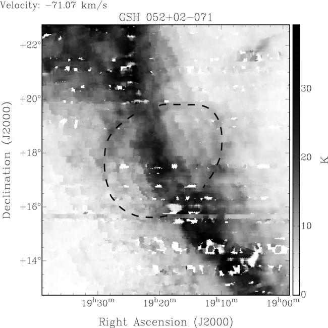 Shell clearly associated with Galactic gas, so kinematic distances relatively reliable.