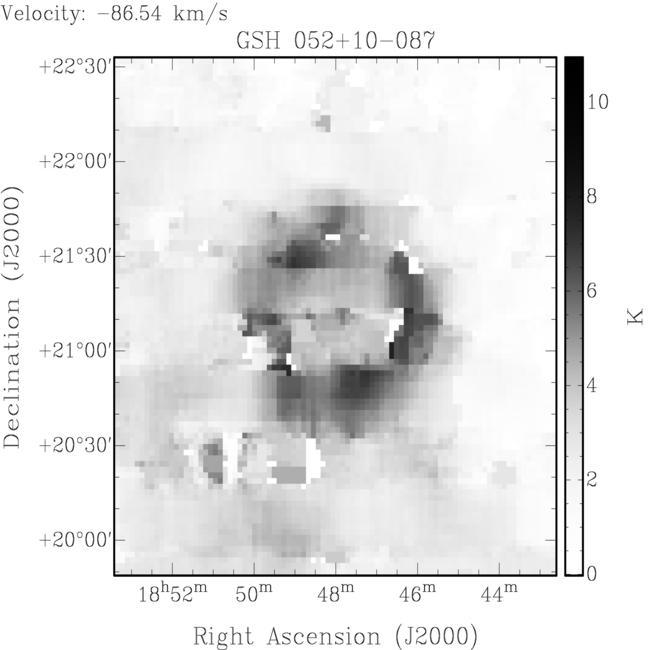 Not clear if shell is associated with local or Galactic gas. Kinematic distances could well be inaccurate.
