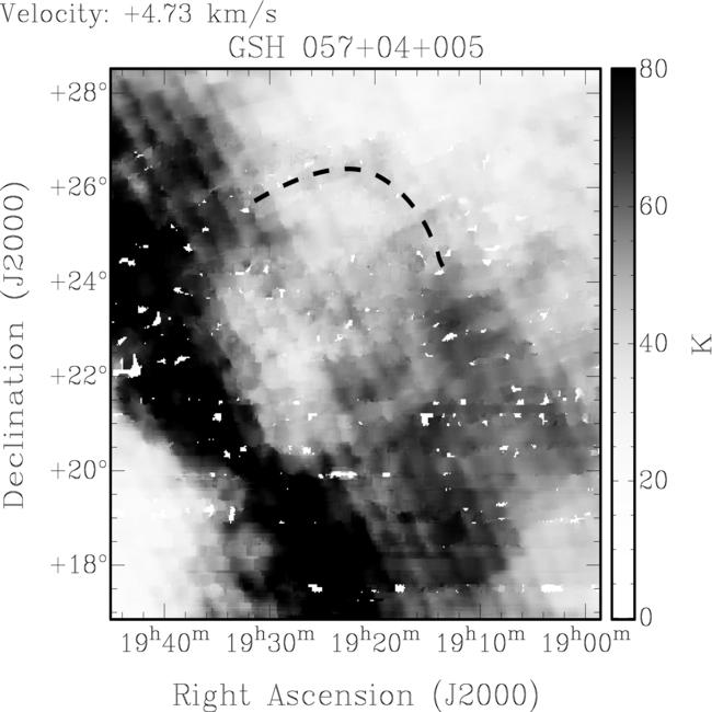 Greater distance more likely based on Galactic spiral structure in direction of shell